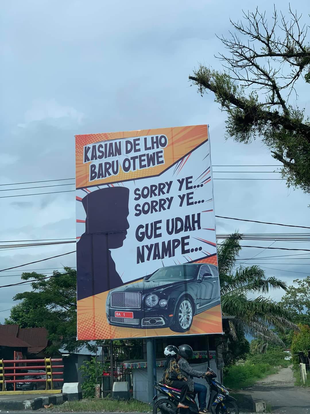 Sebelumnya, terdapat sebuah baliho yang menarik perhatian, terpasang di jalan kawasan Lolong, depan Pangeran Hotel. Isi baliho tersebut berupa sindiran, ‘Kasian de Lho Baru Otewe’, dan dilanjutkan dengan ‘Sorry Ye, Sorry Ye, Gue Udah Nyampe’, dengan menampilkan gambar mobil mewah dengan plat nomor BA 1 yang merupakan plat resmi Gubernur Sumbar.